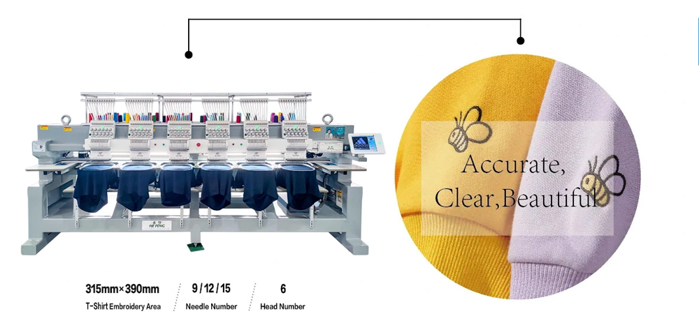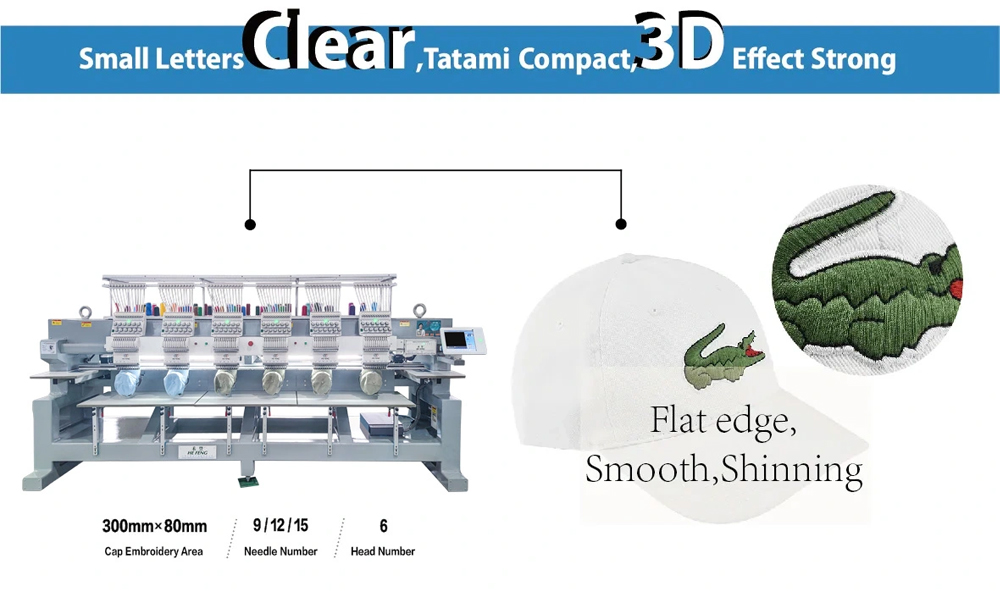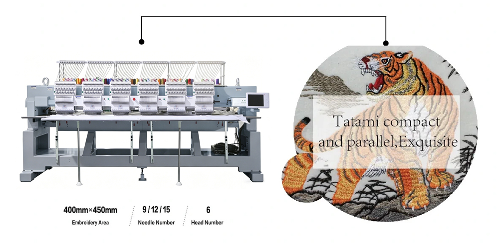 | Model | Needle No. | Head No. | Embroidery Area (mm) | Shirt Embroidery (mm) | Cap Embroidery (mm) | Machine Size (mm) |
